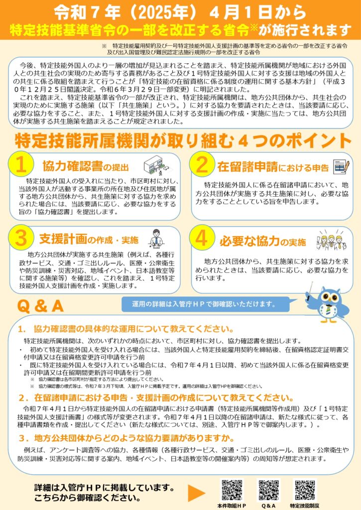 特定技能外国人の在留に関する諸申請において、都道道県、市区町村が行う共生施策に協力することを申告する必要があります。