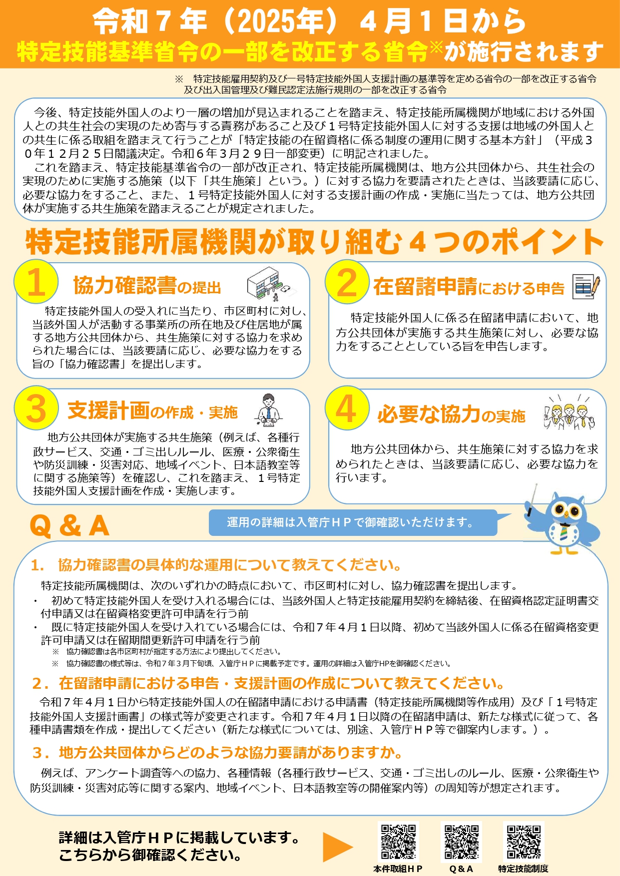 特定技能外国人の在留に関する諸申請において、都道道県、市区町村が行う共生施策に協力することを申告する必要があります。