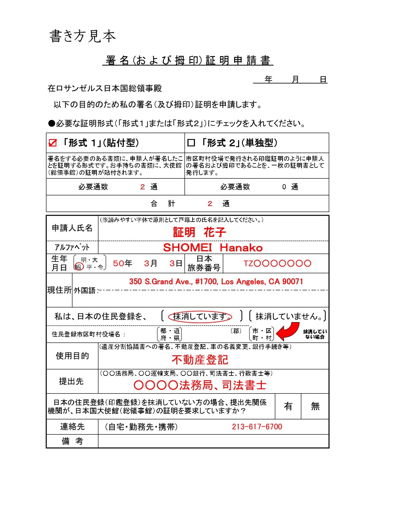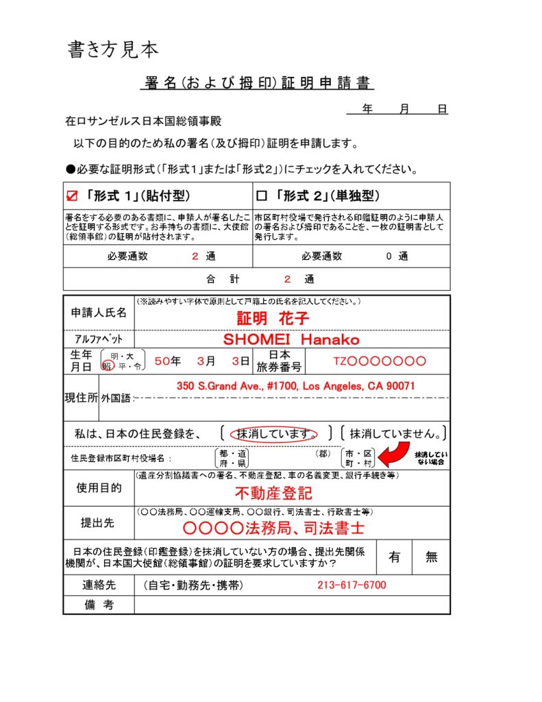 ②署名(および拇印)証明申請書